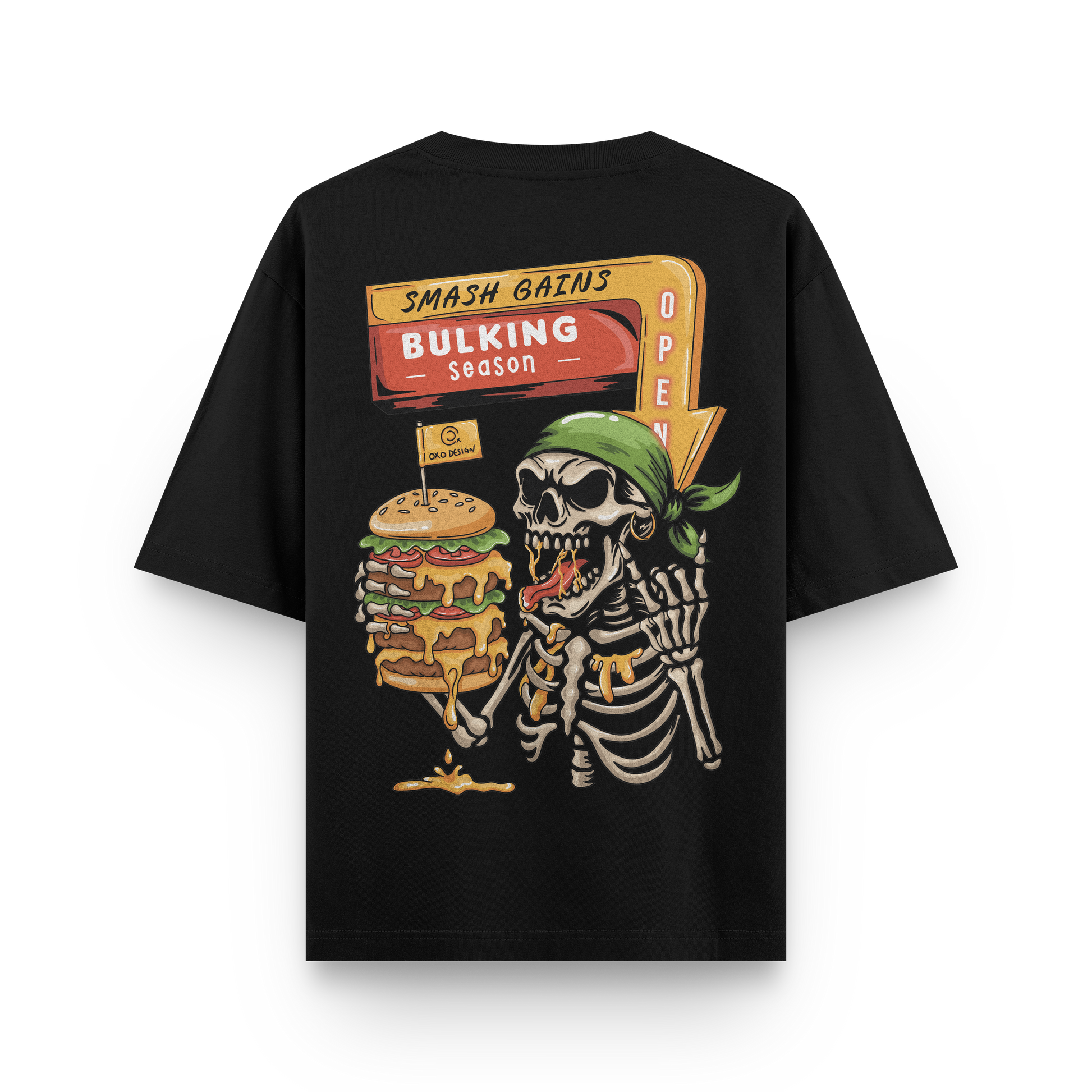Cuando el hambre de progreso se junta con el hambre real, nace SMASH GAINS: una camiseta para quienes ven cada comida como una misión y cada entrenamiento como la antesala de la siguiente hamburguesa.