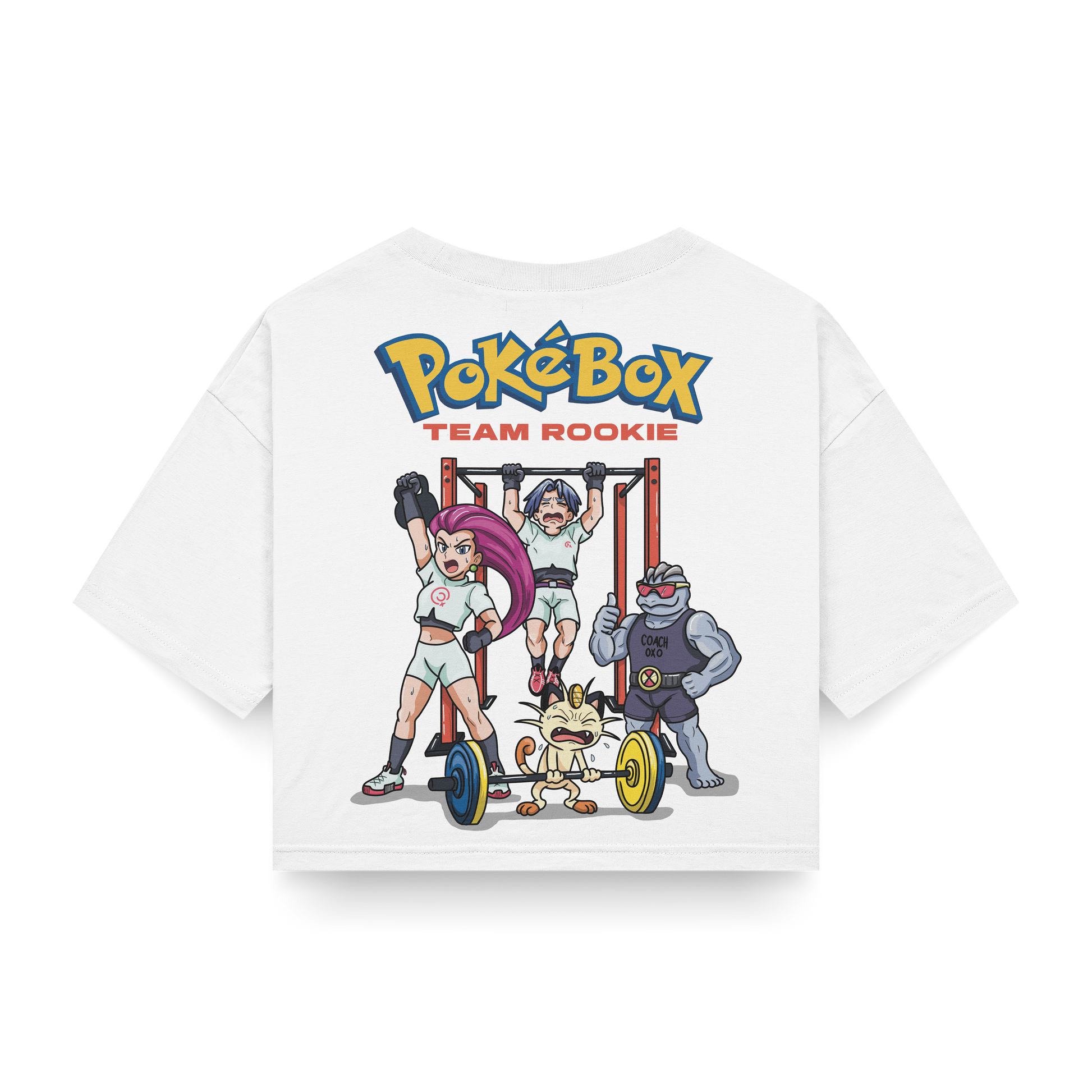 Este diseño está dedicado a quienes recién comienzan su aventura en el box —esos valientes novatos que, como el Team Rocket, nunca se rinden (aunque terminen tirados en el suelo después del WOD).